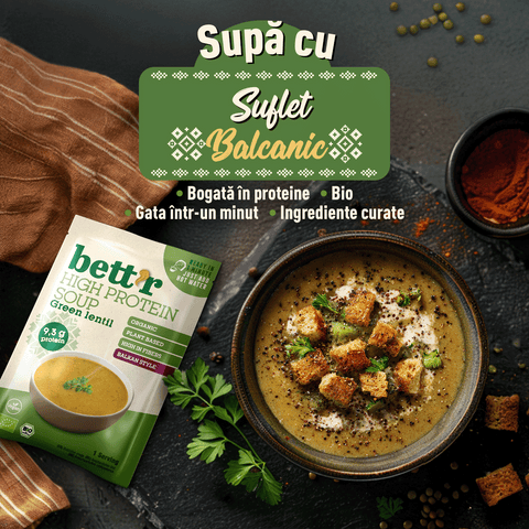 Supă proteică bio cu linte verde