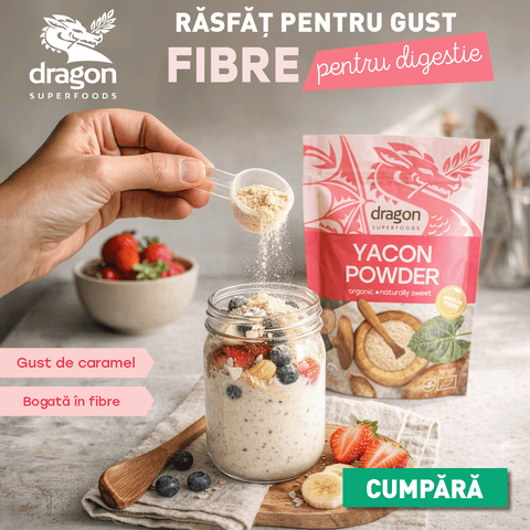 Gust de caramel, indice glicemic redus și fibre prebiotice pentru digestie.