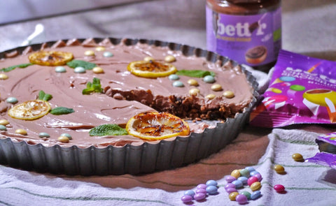 Pentru acest cheesecake folosim Bett'r Tartinat cu alune și cacao -Tartinatură 100% organică, fără adaos de zahăr și ulei de palmier, cu o aromă bogată de alune și un gust irezistibil de ciocolată.>