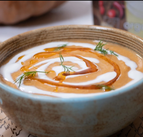 Această supă hrănitoare de toamnă nu numai că te va încălzi, dar și va oferi corpului tău stimularea imunitară de care are nevoie în timpul anotimpurilor reci. În plus, cu pudra de băutură de ovăz Bett'r, obții o textură delicios de netedă și o dulceață naturală - fără zahăr adăugat!