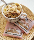 Fulgi de ovăz fără gluten* (24%), caju* (22%), sirop de nucă de cocos*, nucă de cocos deshidratată*, fulgi de ciocolată* (masă de cacao*, zahăr de cocos*, unt de cacao*, lecitină de floarea soarelui*) (8%), ulei de nucă de cocos*, fulgi de cocos*, bourbon vanilie* (0,3%), sare.