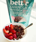 Coaptă lent pentru a obține textura perfectă, granola Bett’r cu migdale și ciocolată este alegerea ideală pentru dimineți rapide, dar pline de gust.